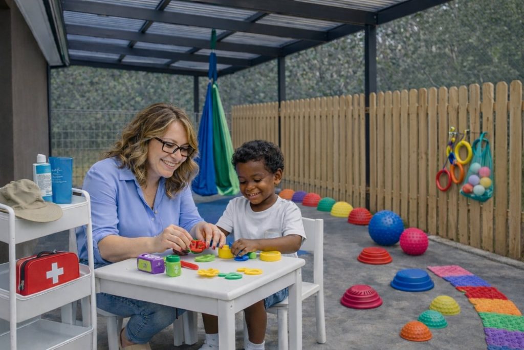 We can also provide a range of sensory and activity-based resources upon request, including building blocks, connecting blocks, stepping buckets, balance and stepping stones, light-up musical stepping stones, musical instruments, arts and craft materials, and selected sensory equipment such as a lycra sensory swing. These resources are used to support regulation, gross motor development, coordination, creativity, and meaningful engagement.
